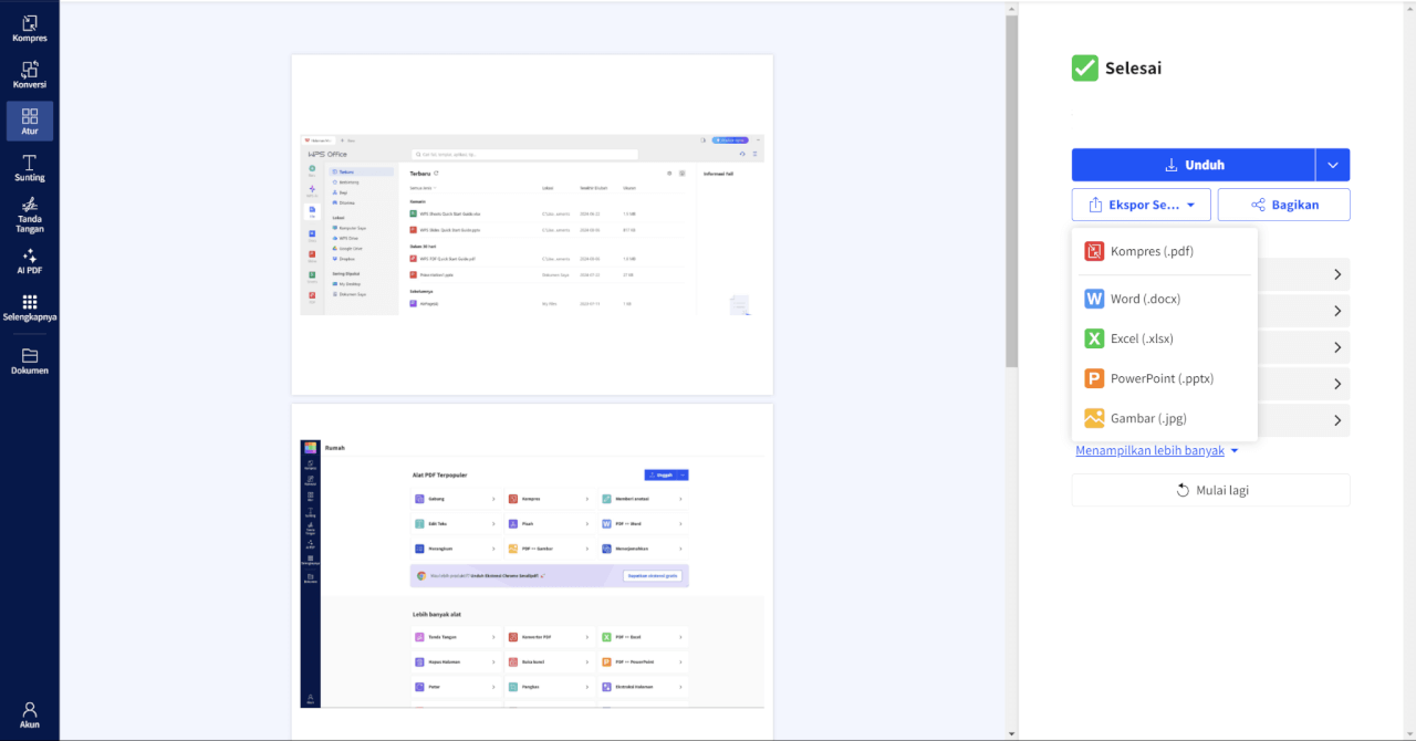 Kamu juga bisa mengekspor file dalam format lain dengan mengklik tab "ekspor sebagai".