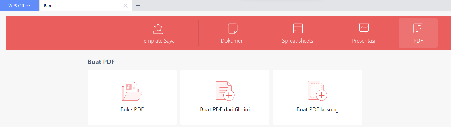 Langkah 1: Buka WPS Office di komputer Anda dan pilih opsi "PDF".