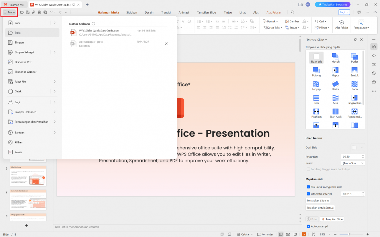 Langkah 1: Buka presentasi Anda di WPS Office.