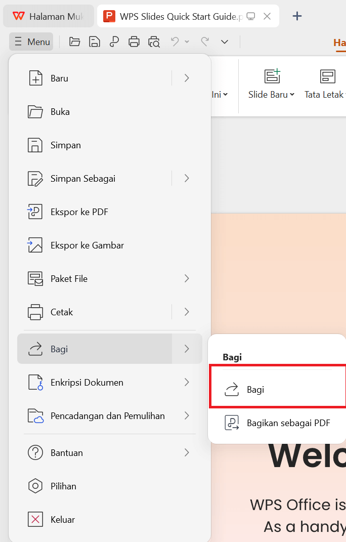 Berikut adalah langkah-langkahnya untuk berbagi PowerPoint secara online menggunakan WPS:
