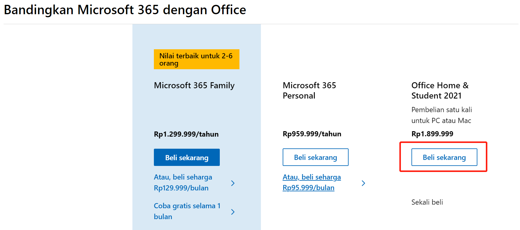 2. Pilih versi Office yang ingin Anda beli.
