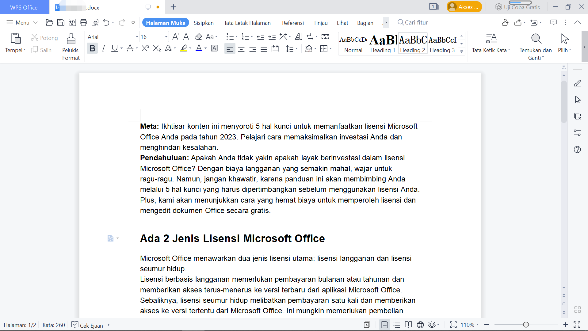 5. Klik dua kali untuk membuka dokumen di WPS Office.